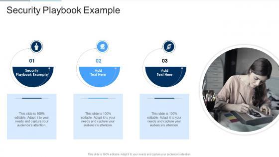 Presenting our innovatively designed set of slides titled Security Playbook Example In Powerpoint And Google Slides Cpb. This completely editable PowerPoint graphic exhibits Security Playbook Example that will help you convey the message impactfully. It can be accessed with Google Slides and is available in both standard screen and widescreen aspect ratios. Apart from this, you can download this well structured PowerPoint template design in different formats like PDF, JPG, and PNG. So, click the download button now to gain full access to this PPT design. Our Security Playbook Example In Powerpoint And Google Slides Cpb are topically designed to provide an attractive backdrop to any subject. Use them to look like a presentation pro.