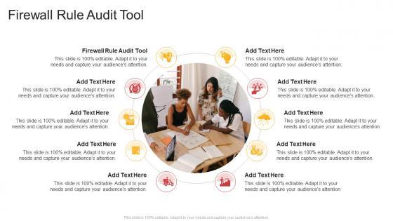 Presenting our innovatively-designed set of slides titled Firewall Rule Audit Tool In Powerpoint And Google Slides Cpb. This completely editable PowerPoint graphic exhibits Firewall Rule Audit Tool that will help you convey the message impactfully. It can be accessed with Google Slides and is available in both standard screen and widescreen aspect ratios. Apart from this, you can download this well-structured PowerPoint template design in different formats like PDF, JPG, and PNG. So, click the download button now to gain full access to this PPT design. Our Firewall Rule Audit Tool In Powerpoint And Google Slides Cpb are topically designed to provide an attractive backdrop to any subject. Use them to look like a presentation pro.