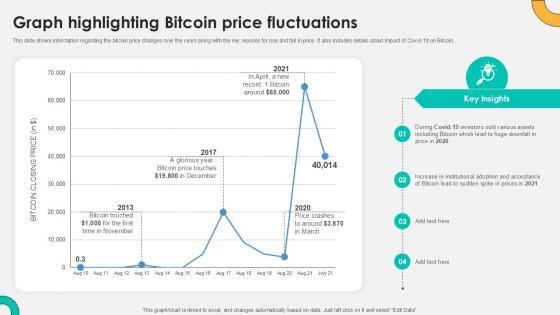 This slide shows information regarding the bitcoin price changes over the years along with the key reasons for rise and fall in price. It also includes details about impact of Covid-19 on Bitcoin. The best PPT templates are a great way to save time, energy, and resources. Slidegeeks have 100 percent editable powerpoint slides making them incredibly versatile. With these quality presentation templates, you can create a captivating and memorable presentation by combining visually appealing slides and effectively communicating your message. Download Graph Highlighting Bitcoin Price Everything About Bitcoin PPT Presentation Fin SS V from Slidegeeks and deliver a wonderful presentation. This slide shows information regarding the bitcoin price changes over the years along with the key reasons for rise and fall in price. It also includes details about impact of Covid-19 on Bitcoin.