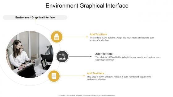 Introducing our well-designed Environment Graphical Interface In Powerpoint And Google Slides Cpb. This PowerPoint design presents information on topics like Environment Graphical Interface. As it is predesigned it helps boost your confidence level. It also makes you a better presenter because of its high-quality content and graphics. This PPT layout can be downloaded and used in different formats like PDF, PNG, and JPG. Not only this, it is available in both Standard Screen and Widescreen aspect ratios for your convenience. Therefore, click on the download button now to persuade and impress your audience. Our Environment Graphical Interface In Powerpoint And Google Slides Cpb are topically designed to provide an attractive backdrop to any subject. Use them to look like a presentation pro.