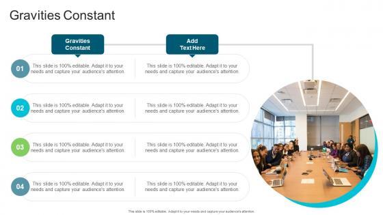 Introducing our well designed Gravities Constant In Powerpoint And Google Slides Cpb This PowerPoint design presents information on topics like Gravities Constant As it is predesigned it helps boost your confidence level. It also makes you a better presenter because of its high quality content and graphics. This PPT layout can be downloaded and used in different formats like PDF, PNG, and JPG. Not only this, it is available in both Standard Screen and Widescreen aspect ratios for your convenience. Therefore, click on the download button now to persuade and impress your audience. Our Gravities Constant In Powerpoint And Google Slides Cpb are topically designed to provide an attractive backdrop to any subject. Use them to look like a presentation pro.