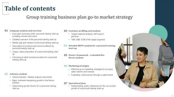The purpose of this slide is to conduct a thorough assessment of the Fitness industry in addition to its market trends. It will help in studying the dynamics of market, such as market sizing, potential customer segments, buying patterns, competition, and other important factors. Here you can discover an assortment of the finest PowerPoint and Google Slides templates. With these templates, you can create presentations for a variety of purposes while simultaneously providing your audience with an eye-catching visual experience. Download Fitness Industry Market Analysis And Trends Contd Group Training Business Ideas Pdf to deliver an impeccable presentation. These templates will make your job of preparing presentations much quicker, yet still, maintain a high level of quality. Slidegeeks has experienced researchers who prepare these templates and write high-quality content for you. Later on, you can personalize the content by editing the Fitness Industry Market Analysis And Trends Contd Group Training Business Ideas Pdf The purpose of this slide is to conduct a thorough assessment of the Fitness industry in addition to its market trends. It will help in studying the dynamics of market, such as market sizing, potential customer segments, buying patterns, competition, and other important factors.
