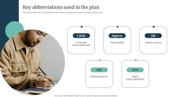 The purpose of this slide is to highlight the shorter version of existing words to save time and take up less space. Do you know about Slidesgeeks Key Abbreviations Used In The Plan Group Training Business Mockup Pdf These are perfect for delivering any kind od presentation. Using it, create PowerPoint presentations that communicate your ideas and engage audiences. Save time and effort by using our pre-designed presentation templates that are perfect for a wide range of topic. Our vast selection of designs covers a range of styles, from creative to business, and are all highly customizable and easy to edit. Download as a PowerPoint template or use them as Google Slides themes. The purpose of this slide is to highlight the shorter version of existing words to save time and take up less space.