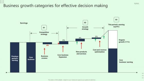Presenting this PowerPoint presentation, titled Business Growth Categories For Effective Decision Making Clipart PDF, with topics curated by our researchers after extensive research. This editable presentation is available for immediate download and provides attractive features when used. Download now and captivate your audience. Presenting this Business Growth Categories For Effective Decision Making Clipart PDF. Our researchers have carefully researched and created these slides with all aspects taken into consideration. This is a completely customizable Business Growth Categories For Effective Decision Making Clipart PDF that is available for immediate downloading. Download now and make an impact on your audience. Highlight the attractive features available with our PPTs.