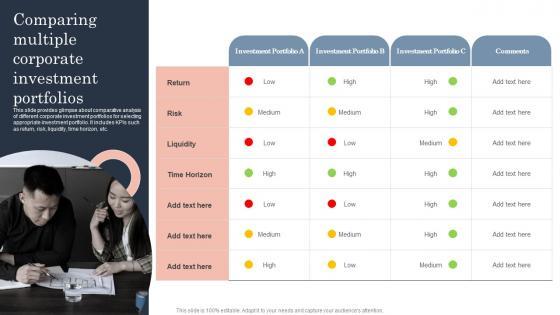 This slide provides glimpse about comparative analysis of different corporate investment portfolios for selecting appropriate investment portfolio. It includes KPIs such as return, risk, liquidity, time horizon, etc.Make sure to capture your audiences attention in your business displays with our gratis customizable Comparing Multiple Corporate Investment Guide To Corporate Financial Growth Plan Summary Pdf. These are great for business strategies, office conferences, capital raising or task suggestions. If you desire to acquire more customers for your tech business and ensure they stay satisfied, create your own sales presentation with these plain slides. This slide provides glimpse about comparative analysis of different corporate investment portfolios for selecting appropriate investment portfolio. It includes KPIs such as return, risk, liquidity, time horizon, etc.