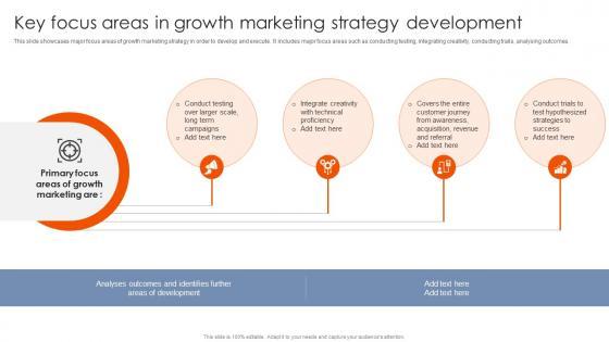 This slide showcases major focus areas of growth marketing strategy in order to develop and execute. It includes major focus areas such as conducting testing, integrating creativity, conducting trails, analysing outcomes. Get a simple yet stunning designed Best Practices For Using Growth Key Focus Areas In Growth Marketing Strategy MKT SS V. It is the best one to establish the tone in your meetings. It is an excellent way to make your presentations highly effective. So, download this PPT today from Slidegeeks and see the positive impacts. Our easy-to-edit Best Practices For Using Growth Key Focus Areas In Growth Marketing Strategy MKT SS V can be your go-to option for all upcoming conferences and meetings. So, what are you waiting for Grab this template today. This slide showcases major focus areas of growth marketing strategy in order to develop and execute. It includes major focus areas such as conducting testing, integrating creativity, conducting trails, analysing outcomes.