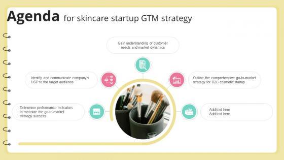 Find a pre-designed and impeccable Agenda For Skincare Startup GTM Strategy GTM SS V. The templates can ace your presentation without additional effort. You can download these easy-to-edit presentation templates to make your presentation stand out from others. So, what are you waiting for Download the template from Slidegeeks today and give a unique touch to your presentation. Our Agenda For Skincare Startup GTM Strategy GTM SS V are topically designed to provide an attractive backdrop to any subject. Use them to look like a presentation pro.