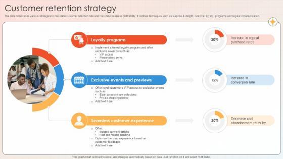 The slide showcases various strategies to maximize customer retention rate and maximize business profitability. It outlines techniques such as surprise and delight, customer loyalty programs and regular communication. Get a simple yet stunning designed Customer Retention Strategy Apparel And Shoes E Commerce Market PPT Sample GTM SS V. It is the best one to establish the tone in your meetings. It is an excellent way to make your presentations highly effective. So, download this PPT today from Slidegeeks and see the positive impacts. Our easy-to-edit Customer Retention Strategy Apparel And Shoes E Commerce Market PPT Sample GTM SS V can be your go-to option for all upcoming conferences and meetings. So, what are you waiting for Grab this template today. The slide showcases various strategies to maximize customer retention rate and maximize business profitability. It outlines techniques such as surprise and delight, customer loyalty programs and regular communication.