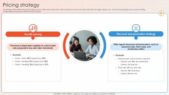 The following slide outlines the pricing strategy used by coffee shop businesses to offer products and services at costs customers are happily willing to pay. It uses pricing strategies such as price bundling, complementary pricing and customer loyalty discounts. Make sure to capture your audiences attention in your business displays with our gratis customizable Pricing Strategy Apparel And Shoes E Commerce Market PPT Sample GTM SS V. These are great for business strategies, office conferences, capital raising or task suggestions. If you desire to acquire more customers for your tech business and ensure they stay satisfied, create your own sales presentation with these plain slides. The following slide outlines the pricing strategy used by coffee shop businesses to offer products and services at costs customers are happily willing to pay. It uses pricing strategies such as price bundling, complementary pricing and customer loyalty discounts.