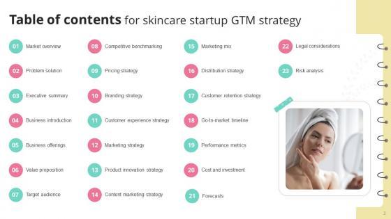 Welcome to our selection of the Table Of Contents For Skincare Startup GTM Strategy GTM SS V. These are designed to help you showcase your creativity and bring your sphere to life. Planning and Innovation are essential for any business that is just starting out. This collection contains the designs that you need for your everyday presentations. All of our PowerPoints are 100 percent editable, so you can customize them to suit your needs. This multi-purpose template can be used in various situations. Grab these presentation templates today. Our Table Of Contents For Skincare Startup GTM Strategy GTM SS V are topically designed to provide an attractive backdrop to any subject. Use them to look like a presentation pro.