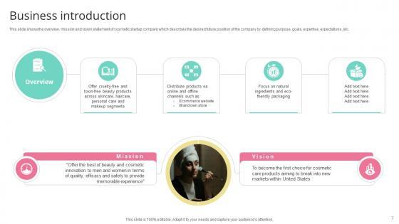 This slide shows the overview, mission and vision statement of cosmetic startup company which describes the desired future position of the company by defining purpose, goals, expertise, expectations, etc. Create an editable Business Introduction Skincare Startup GTM Strategy GTM SS V that communicates your idea and engages your audience. Whether you are presenting a business or an educational presentation, pre-designed presentation templates help save time. Business Introduction Skincare Startup GTM Strategy GTM SS V is highly customizable and very easy to edit, covering many different styles from creative to business presentations. Slidegeeks has creative team members who have crafted amazing templates. So, go and get them without any delay. This slide shows the overview, mission and vision statement of cosmetic startup company which describes the desired future position of the company by defining purpose, goals, expertise, expectations, etc.