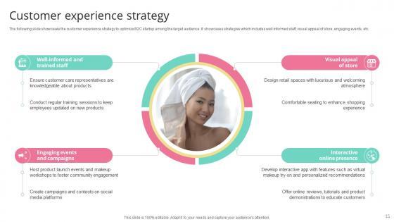 The following slide showcases the customer experience strategy to optimize B2C startup among the target audience. It showcases strategies which includes well informed staff, visual appeal of store, engaging events, etc.Get a simple yet stunning designed Customer Experience Strategy Skincare Startup GTM Strategy GTM SS V. It is the best one to establish the tone in your meetings. It is an excellent way to make your presentations highly effective. So, download this PPT today from Slidegeeks and see the positive impacts. Our easy-to-edit Customer Experience Strategy Skincare Startup GTM Strategy GTM SS V can be your go-to option for all upcoming conferences and meetings. So, what are you waiting for Grab this template today. The following slide showcases the customer experience strategy to optimize B2C startup among the target audience. It showcases strategies which includes well informed staff, visual appeal of store, engaging events, etc.