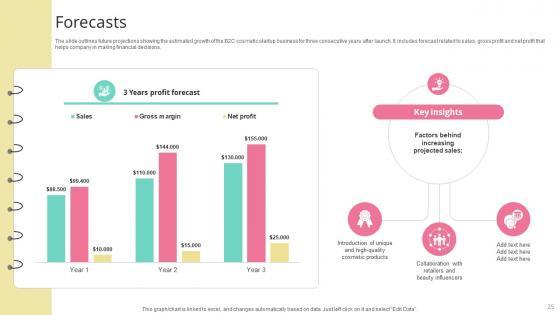 The slide outlines future projections showing the estimated growth of the B2C cosmetic startup business for three consecutive years after launch. It includes forecast related to sales, gross profit and net profit that helps company in making financial decisions.Slidegeeks is here to make your presentations a breeze with Forecasts Skincare Startup GTM Strategy GTM SS V With our easy-to-use and customizable templates, you can focus on delivering your ideas rather than worrying about formatting. With a variety of designs to choose from, you are sure to find one that suits your needs. And with animations and unique photos, illustrations, and fonts, you can make your presentation pop. So whether you are giving a sales pitch or presenting to the board, make sure to check out Slidegeeks first The slide outlines future projections showing the estimated growth of the B2C cosmetic startup business for three consecutive years after launch. It includes forecast related to sales, gross profit and net profit that helps company in making financial decisions.