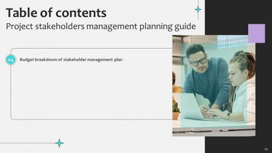 Here you can discover an assortment of the finest PowerPoint and Google Slides templates. With these templates, you can create presentations for a variety of purposes while simultaneously providing your audience with an eye-catching visual experience. Download Table Of Contents For Project Stakeholders Management Planning Guide Ppt Slide to deliver an impeccable presentation. These templates will make your job of preparing presentations much quicker, yet still, maintain a high level of quality. Slidegeeks has experienced researchers who prepare these templates and write high-quality content for you. Later on, you can personalize the content by editing the Table Of Contents For Project Stakeholders Management Planning Guide Ppt Slide. Our Table Of Contents For Project Stakeholders Management Planning Guide Ppt Slide are topically designed to provide an attractive backdrop to any subject. Use them to look like a presentation pro.
