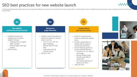 Following slide represents best practices to assure operational efficiency and accuracy of website launch to drive organic traffic. It include pointers such as set performance benchmarks, review on page elements and conduct pre launch review. Get a simple yet stunning designed Complete Guide To Launch SEO Best Practices For New Website Launch. It is the best one to establish the tone in your meetings. It is an excellent way to make your presentations highly effective. So, download this PPT today from Slidegeeks and see the positive impacts. Our easy-to-edit Complete Guide To Launch SEO Best Practices For New Website Launch can be your go-to option for all upcoming conferences and meetings. So, what are you waiting for Grab this template today. Following slide represents best practices to assure operational efficiency and accuracy of website launch to drive organic traffic. It include pointers such as set performance benchmarks, review on page elements and conduct pre launch review.