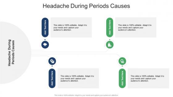 Introducing our well designed Headache During Periods Causes In Powerpoint And Google Slides Cpb. This PowerPoint design presents information on topics like Headache During Periods Causes. As it is predesigned it helps boost your confidence level. It also makes you a better presenter because of its high-quality content and graphics. This PPT layout can be downloaded and used in different formats like PDF, PNG, and JPG. Not only this, it is available in both Standard Screen and Widescreen aspect ratios for your convenience. Therefore, click on the download button now to persuade and impress your audience. Our Headache During Periods Causes In Powerpoint And Google Slides Cpb are topically designed to provide an attractive backdrop to any subject. Use them to look like a presentation pro.