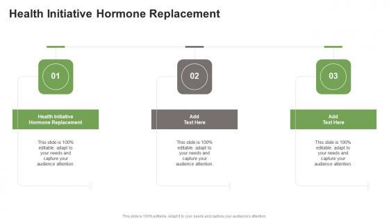 Presenting our innovatively-designed set of slides titled Health Initiative Hormone Replacement In Powerpoint And Google Slides Cpb. This completely editable PowerPoint graphic exhibits Health Initiative Hormone Replacement that will help you convey the message impactfully. It can be accessed with Google Slides and is available in both standard screen and widescreen aspect ratios. Apart from this, you can download this well-structured PowerPoint template design in different formats like PDF, JPG, and PNG. So, click the download button now to gain full access to this PPT design. Our Health Initiative Hormone Replacement In Powerpoint And Google Slides Cpb are topically designed to provide an attractive backdrop to any subject. Use them to look like a presentation pro.