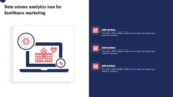 Pitch your topic with ease and precision using this Data Science Analytics Icon For Healthcare Marketing Ppt Model Demonstration Pdf. This layout presents information on Data Science, Analytics Icon, Healthcare Marketing. It is also available for immediate download and adjustment. So, changes can be made in the color, design, graphics or any other component to create a unique layout. Our Data Science Analytics Icon For Healthcare Marketing Ppt Model Demonstration Pdf are topically designed to provide an attractive backdrop to any subject. Use them to look like a presentation pro.