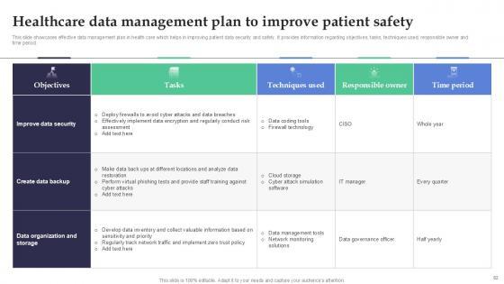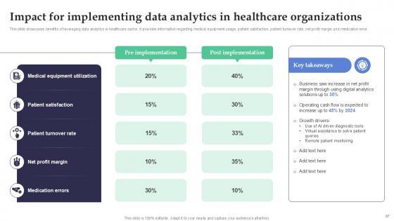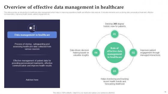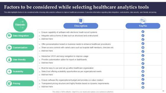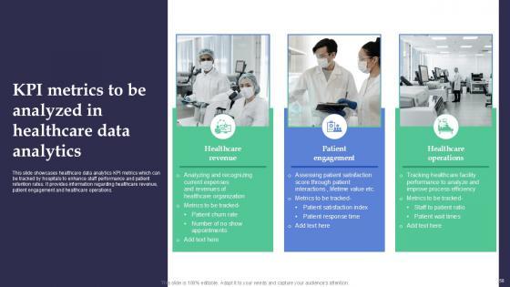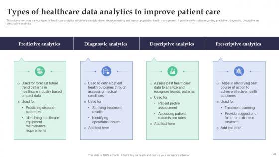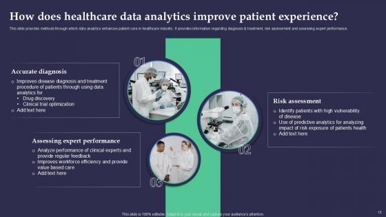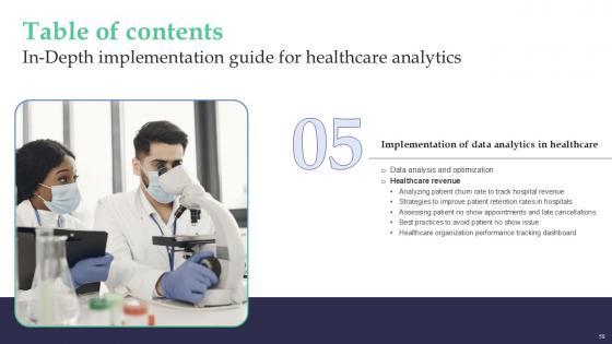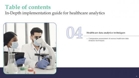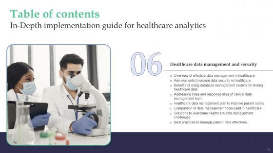 With well-researched insights and carefully-constructed design, this In Depth Implementation Guide For Healthcare Analytics Ppt Example Data Analytics CD V is all that you need for your next business meeting with clients and win them over. Add your data to graphs, charts, and tables that are already ready to display it with stunning visuals and help your audience recall your work. With this PPT Complete Deck, you will be able to display your knowledge of the subject as well as your skills as a communicator. Share your ideas and make an impact on the audience with this PowerPoint Layout and ensure that you are known as a presentation professional. Download this PPT Template Bundle to create the most interesting presentation anyone has ever seen. Our In Depth Implementation Guide For Healthcare Analytics Ppt Example Data Analytics CD V are topically designed to provide an attractive backdrop to any subject. Use them to look like a presentation pro.