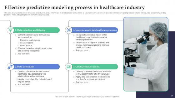 This slide outlines the application of predictive analytics in the healthcare department for forecasting the probability of patients having particular medical disorders. The benefits include improving patient outcomes, relief for healthcare professionals, and improvement in the decision making process. From laying roadmaps to briefing everything in detail, our templates are perfect for you. You can set the stage with your presentation slides. All you have to do is download these easy-to-edit and customizable templates. Predictive Data Model Applications Of Predictive Analytics In Healthcare Department Summary PDF will help you deliver an outstanding performance that everyone would remember and praise you for. Do download this presentation today.