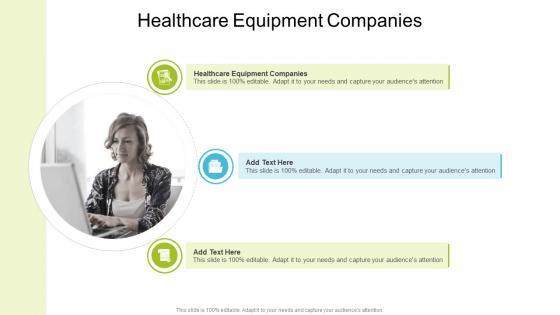 Introducing our well designed Healthcare Equipment Companies In Powerpoint And Google Slides Cpb. This PowerPoint design presents information on topics like Healthcare Equipment Companies. As it is predesigned it helps boost your confidence level. It also makes you a better presenter because of its high quality content and graphics. This PPT layout can be downloaded and used in different formats like PDF, PNG, and JPG. Not only this, it is available in both Standard Screen and Widescreen aspect ratios for your convenience. Therefore, click on the download button now to persuade and impress your audience. Our Healthcare Equipment Companies In Powerpoint And Google Slides Cpb are topically designed to provide an attractive backdrop to any subject. Use them to look like a presentation pro.