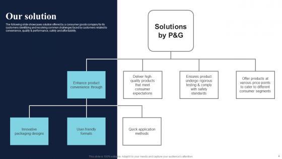 The following slide showcases solution offered by a consumer goods company for its customers identifying and resolving common challenges faced by customers related to convenience, quality and performance, safety and affordability. Get a simple yet stunning designed Our Solution Healthcare Product Company Fund Raising Pitch Deck Demonstration Pdf. It is the best one to establish the tone in your meetings. It is an excellent way to make your presentations highly effective. So, download this PPT today from Slidegeeks and see the positive impacts. Our easy-to-edit Our Solution Healthcare Product Company Fund Raising Pitch Deck Demonstration Pdf can be your go-to option for all upcoming conferences and meetings. So, what are you waiting for Grab this template today. The following slide showcases solution offered by a consumer goods company for its customers identifying and resolving common challenges faced by customers related to convenience, quality and performance, safety and affordability.