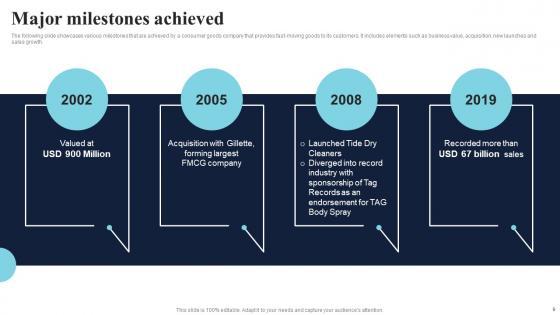 The following slide showcases various milestones that are achieved by a consumer goods company that provides fast-moving goods to its customers. It includes elements such as business value, acquisition, new launches and sales growth. Want to ace your presentation in front of a live audience Our Major Milestones Achieved Healthcare Product Company Fund Raising Pitch Deck Themes Pdf can help you do that by engaging all the users towards you. Slidegeeks experts have put their efforts and expertise into creating these impeccable powerpoint presentations so that you can communicate your ideas clearly. Moreover, all the templates are customizable, and easy-to-edit and downloadable. Use these for both personal and commercial use. The following slide showcases various milestones that are achieved by a consumer goods company that provides fast-moving goods to its customers. It includes elements such as business value, acquisition, new launches and sales growth.