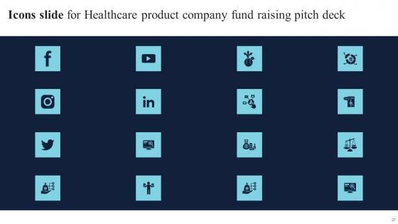 Help your business to create an attention-grabbing presentation using our Icons Slide For Healthcare Product Company Fund Raising Pitch Deck Template Pdf set of slides. The slide contains innovative icons that can be flexibly edited. Choose this Icons Slide For Healthcare Product Company Fund Raising Pitch Deck Template Pdf template to create a satisfactory experience for your customers. Go ahead and click the download button. Our Icons Slide For Healthcare Product Company Fund Raising Pitch Deck Template Pdf are topically designed to provide an attractive backdrop to any subject. Use them to look like a presentation pro.
