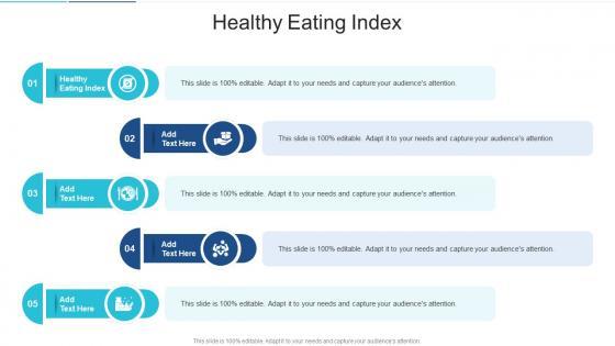 Introducing our well designed Healthy Eating Index In Powerpoint And Google Slides Cpb. This PowerPoint design presents information on topics like Healthy Eating Index. As it is predesigned it helps boost your confidence level. It also makes you a better presenter because of its high quality content and graphics. This PPT layout can be downloaded and used in different formats like PDF, PNG, and JPG. Not only this, it is available in both Standard Screen and Widescreen aspect ratios for your convenience. Therefore, click on the download button now to persuade and impress your audience. Our Healthy Eating Index In Powerpoint And Google Slides Cpb are topically designed to provide an attractive backdrop to any subject. Use them to look like a presentation pro.