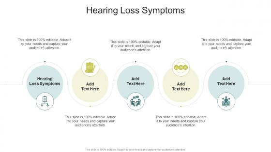 Presenting our innovatively designed set of slides titled Hearing Loss Symptoms In Powerpoint And Google Slides Cpb. This completely editable PowerPoint graphic exhibits Hearing Loss Symptoms that will help you convey the message impactfully. It can be accessed with Google Slides and is available in both standard screen and widescreen aspect ratios. Apart from this, you can download this well structured PowerPoint template design in different formats like PDF, JPG, and PNG. So, click the download button now to gain full access to this PPT design. Our Hearing Loss Symptoms In Powerpoint And Google Slides Cpb are topically designed to provide an attractive backdrop to any subject. Use them to look like a presentation pro.