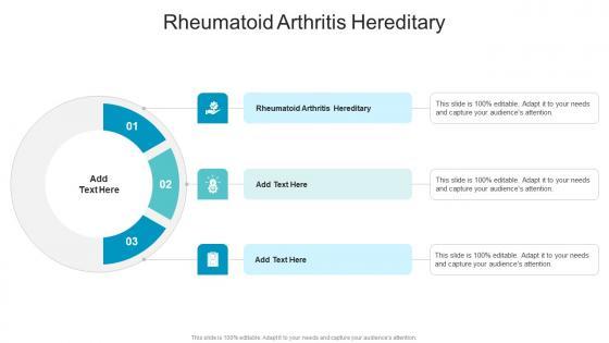 Introducing our well designed Rheumatoid Arthritis Hereditary In Powerpoint And Google Slides Cpb This PowerPoint design presents information on topics like Rheumatoid Arthritis Hereditary As it is predesigned it helps boost your confidence level. It also makes you a better presenter because of its high quality content and graphics. This PPT layout can be downloaded and used in different formats like PDF, PNG, and JPG. Not only this, it is available in both Standard Screen and Widescreen aspect ratios for your convenience. Therefore, click on the download button now to persuade and impress your audience. Our Rheumatoid Arthritis Hereditary In Powerpoint And Google Slides Cpb are topically designed to provide an attractive backdrop to any subject. Use them to look like a presentation pro.