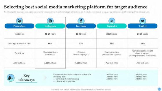 This slide covers social media marketing plans on various LinkedIn, Facebook, Instagram, Twitter, and YouTube platforms. It also includes platforms, lead generation goals, strategies, suitability, and impact. If your project calls for a presentation, then Slidegeeks is your go to partner because we have professionally designed, easy to edit templates that are perfect for any presentation. After downloading, you can easily edit Effective Lead Generation For Higher Conversion Rates Social Media Marketing Plan To Increase Numbe Elements PDF and make the changes accordingly. You can rearrange slides or fill them with different images. Check out all the handy templates