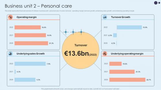 This slide represents financial overview of Unilever business unit personal care. It covers turnover, operating margin, turnover growth, underlying sales growth, and underlying operating margin.Want to ace your presentation in front of a live audience Our Business Unit 2 Personal Care Home Care Solutions Company Profile CP SS V can help you do that by engaging all the users towards you. Slidegeeks experts have put their efforts and expertise into creating these impeccable powerpoint presentations so that you can communicate your ideas clearly. Moreover, all the templates are customizable, and easy-to-edit and downloadable. Use these for both personal and commercial use. This slide represents financial overview of Unilever business unit personal care. It covers turnover, operating margin, turnover growth, underlying sales growth, and underlying operating margin.