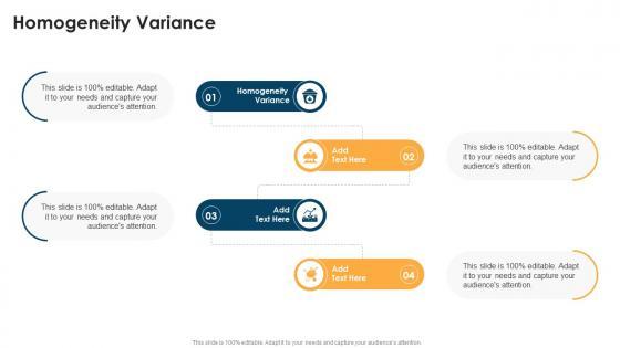 Introducing our well designed Homogeneity Variance In Powerpoint And Google Slides Cpb. This PowerPoint design presents information on topics like Homogeneity Variance. As it is predesigned it helps boost your confidence level. It also makes you a better presenter because of its high quality content and graphics. This PPT layout can be downloaded and used in different formats like PDF, PNG, and JPG. Not only this, it is available in both Standard Screen and Widescreen aspect ratios for your convenience. Therefore, click on the download button now to persuade and impress your audience. Our Homogeneity Variance In Powerpoint And Google Slides Cpb are topically designed to provide an attractive backdrop to any subject. Use them to look like a presentation pro.