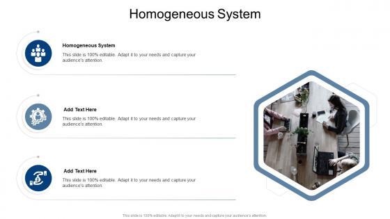 Introducing our well designed Homogeneous System In Powerpoint And Google Slides Cpb This PowerPoint design presents information on topics like Homogeneous System As it is predesigned it helps boost your confidence level. It also makes you a better presenter because of its high quality content and graphics. This PPT layout can be downloaded and used in different formats like PDF, PNG, and JPG. Not only this, it is available in both Standard Screen and Widescreen aspect ratios for your convenience. Therefore, click on the download button now to persuade and impress your audience. Our Homogeneous System In Powerpoint And Google Slides Cpb are topically designed to provide an attractive backdrop to any subject. Use them to look like a presentation pro.