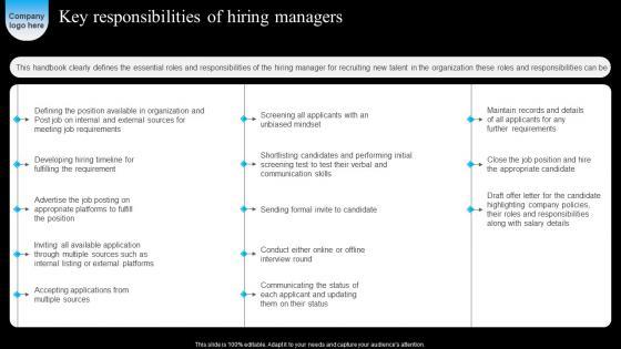 Slidegeeks is here to make your presentations a breeze with Key Responsibilities Of Hiring Managers Human Resources Hiring Guide Optimal Themes Pdf With our easy-to-use and customizable templates, you can focus on delivering your ideas rather than worrying about formatting. With a variety of designs to choose from, you are sure to find one that suits your needs. And with animations and unique photos, illustrations, and fonts, you can make your presentation pop. So whether you are giving a sales pitch or presenting to the board, make sure to check out Slidegeeks first. Our Key Responsibilities Of Hiring Managers Human Resources Hiring Guide Optimal Themes Pdf are topically designed to provide an attractive backdrop to any subject. Use them to look like a presentation pro.