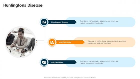 Introducing our well designed Huntingtons Disease In Powerpoint And Google Slides Cpb This PowerPoint design presents information on topics like Huntingtons Disease As it is predesigned it helps boost your confidence level. It also makes you a better presenter because of its high quality content and graphics. This PPT layout can be downloaded and used in different formats like PDF, PNG, and JPG. Not only this, it is available in both Standard Screen and Widescreen aspect ratios for your convenience. Therefore, click on the download button now to persuade and impress your audience. Our Huntingtons Disease In Powerpoint And Google Slides Cpb are topically designed to provide an attractive backdrop to any subject. Use them to look like a presentation pro.