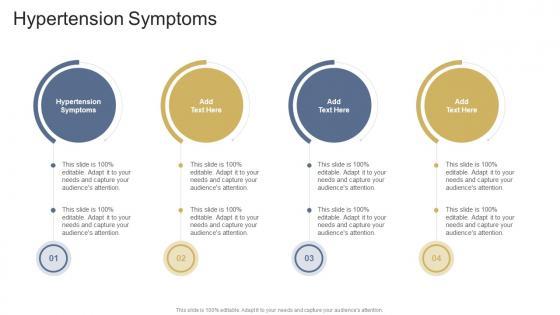 Presenting our innovatively designed set of slides titled Hypertension Symptoms In Powerpoint And Google Slides Cpb. This completely editable PowerPoint graphic exhibits Hypertension Symptoms that will help you convey the message impactfully. It can be accessed with Google Slides and is available in both standard screen and widescreen aspect ratios. Apart from this, you can download this well-structured PowerPoint template design in different formats like PDF, JPG, and PNG. So, click the download button now to gain full access to this PPT design. Our Hypertension Symptoms In Powerpoint And Google Slides Cpb are topically designed to provide an attractive backdrop to any subject. Use them to look like a presentation pro.
