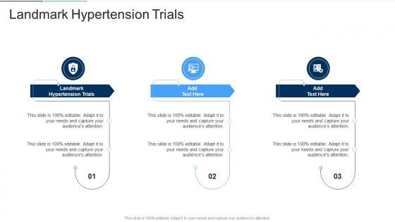 Introducing our well designed Landmark Hypertension Trials In Powerpoint And Google Slides Cpb. This PowerPoint design presents information on topics like Landmark Hypertension Trials. As it is predesigned it helps boost your confidence level. It also makes you a better presenter because of its high quality content and graphics. This PPT layout can be downloaded and used in different formats like PDF, PNG, and JPG. Not only this, it is available in both Standard Screen and Widescreen aspect ratios for your convenience. Therefore, click on the download button now to persuade and impress your audience. Our Landmark Hypertension Trials In Powerpoint And Google Slides Cpb are topically designed to provide an attractive backdrop to any subject. Use them to look like a presentation pro.