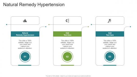Introducing our well designed Natural Remedy Hypertension In Powerpoint And Google Slides Cpb. This PowerPoint design presents information on topics like Natural Remedy Hypertension. As it is predesigned it helps boost your confidence level. It also makes you a better presenter because of its high quality content and graphics. This PPT layout can be downloaded and used in different formats like PDF, PNG, and JPG. Not only this, it is available in both Standard Screen and Widescreen aspect ratios for your convenience. Therefore, click on the download button now to persuade and impress your audience. Our Natural Remedy Hypertension In Powerpoint And Google Slides Cpb are topically designed to provide an attractive backdrop to any subject. Use them to look like a presentation pro.