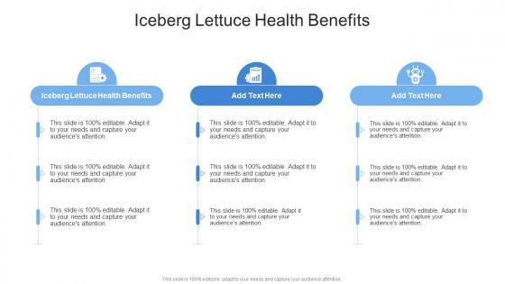 Presenting our innovatively-designed set of slides titled Iceberg Lettuce Health Benefits In Powerpoint And Google Slides Cpb. This completely editable PowerPoint graphic exhibits Iceberg Lettuce Health Benefits that will help you convey the message impactfully. It can be accessed with Google Slides and is available in both standard screen and widescreen aspect ratios. Apart from this, you can download this well-structured PowerPoint template design in different formats like PDF, JPG, and PNG. So, click the download button now to gain full access to this PPT design. Our Iceberg Lettuce Health Benefits In Powerpoint And Google Slides Cpb are topically designed to provide an attractive backdrop to any subject. Use them to look like a presentation pro.