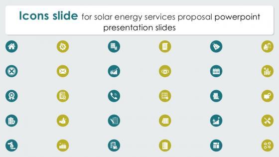 This modern and well-arranged Icons Slide For Solar Energy Services Proposal PowerPoint Presentation Slides PPT Slides SS provides lots of creative possibilities. It is very simple to customize and edit with the Powerpoint Software. Just drag and drop your pictures into the shapes. All facets of this template can be edited with Powerpoint, no extra software is necessary. Add your own material, put your images in the places assigned for them, adjust the colors, and then you can show your slides to the world, with an animated slide included. Our Icons Slide For Solar Energy Services Proposal PowerPoint Presentation Slides PPT Slides SS are topically designed to provide an attractive backdrop to any subject. Use them to look like a presentation pro.