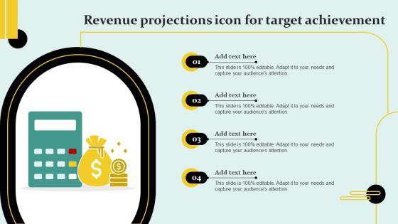 Showcasing this set of slides titled Revenue Projections Icon For Target Achievement Diagrams Pdf The topics addressed in these templates are Income Forecast, Icon For Target Achievement All the content presented in this PPT design is completely editable. Download it and make adjustments in color, background, font etc. as per your unique business setting. Our Revenue Projections Icon For Target Achievement Diagrams Pdf are topically designed to provide an attractive backdrop to any subject. Use them to look like a presentation pro.