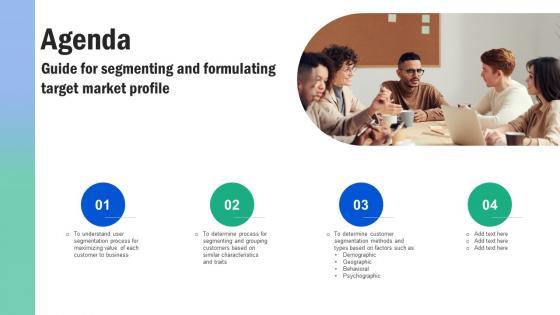 Find a pre designed and impeccable Agenda Guide For Segmenting And Formulating Target Market Profile Icons Pdf. The templates can ace your presentation without additional effort. You can download these easy to edit presentation templates to make your presentation stand out from others. So, what are you waiting for Download the template from Slidegeeks today and give a unique touch to your presentation. Our Agenda Guide For Segmenting And Formulating Target Market Profile Icons Pdf are topically designed to provide an attractive backdrop to any subject. Use them to look like a presentation pro.