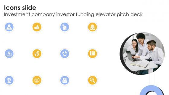 Help your business to create an attention-grabbing presentation using our Icons Slide Investment Company Investor Funding Elevator Ppt Powerpoint set of slides. The slide contains innovative icons that can be flexibly edited. Choose this Icons Slide Investment Company Investor Funding Elevator Ppt Powerpoint template to create a satisfactory experience for your customers. Go ahead and click the download button. Our Icons Slide Investment Company Investor Funding Elevator Ppt Powerpoint are topically designed to provide an attractive backdrop to any subject. Use them to look like a presentation pro.