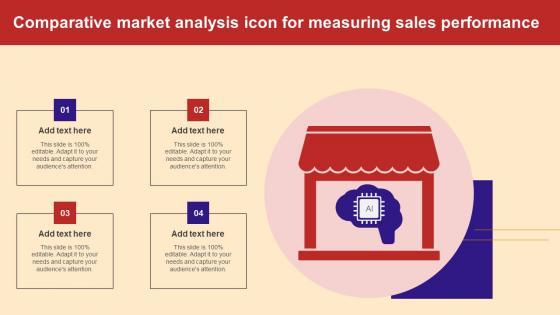 Showcasing this set of slides titled Comparative Market Analysis Icon For Measuring Sales Performance Background Pdf The topics addressed in these templates are Comparative Market, Analysis Icon, Measuring Sales Performance All the content presented in this PPT design is completely editable. Download it and make adjustments in color, background, font etc. as per your unique business setting. Our Comparative Market Analysis Icon For Measuring Sales Performance Background Pdf are topically designed to provide an attractive backdrop to any subject. Use them to look like a presentation pro.