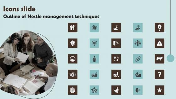 Help your business to create an attention-grabbing presentation using our Icons Slide Outline Of Nestle Management Techniques Mockup Pdf set of slides. The slide contains innovative icons that can be flexibly edited. Choose this Icons Slide Outline Of Nestle Management Techniques Mockup Pdf template to create a satisfactory experience for your customers. Go ahead and click the download button. Our Icons Slide Outline Of Nestle Management Techniques Mockup Pdf are topically designed to provide an attractive backdrop to any subject. Use them to look like a presentation pro.