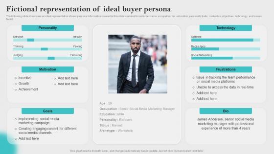 The following slide showcases an ideal representation of user persona. Information covered in this slide is related to customer name, occupation, bio, education, personality traits, motivation, objectives, technology, and issues faced. This modern and well arranged Fictional Representation Of Ideal Innovative Business Promotion Ideas Formats Pdf provides lots of creative possibilities. It is very simple to customize and edit with the Powerpoint Software. Just drag and drop your pictures into the shapes. All facets of this template can be edited with Powerpoint no extra software is necessary. Add your own material, put your images in the places assigned for them, adjust the colors, and then you can show your slides to the world, with an animated slide included. The following slide showcases an ideal representation of user persona. Information covered in this slide is related to customer name, occupation, bio, education, personality traits, motivation, objectives, technology, and issues faced.