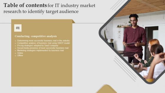 Explore a selection of the finest IT Industry Market Research To Identify Target Audience Table Of Contents Rules Pdf here. With a plethora of professionally designed and pre-made slide templates, you can quickly and easily find the right one for your upcoming presentation. You can use our IT Industry Market Research To Identify Target Audience Table Of Contents Rules Pdf to effectively convey your message to a wider audience. Slidegeeks has done a lot of research before preparing these presentation templates. The content can be personalized and the slides are highly editable. Grab templates today from Slidegeeks. Our IT Industry Market Research To Identify Target Audience Table Of Contents Rules Pdf are topically designed to provide an attractive backdrop to any subject. Use them to look like a presentation pro.