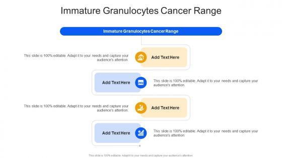 Presenting our innovatively designed set of slides titled Immature Granulocytes Cancer Range In Powerpoint And Google Slides Cpb. This completely editable PowerPoint graphic exhibits Immature Granulocytes Cancer Range that will help you convey the message impactfully. It can be accessed with Google Slides and is available in both standard screen and widescreen aspect ratios. Apart from this, you can download this well structured PowerPoint template design in different formats like PDF, JPG, and PNG. So, click the download button now to gain full access to this PPT design. Our Immature Granulocytes Cancer Range In Powerpoint And Google Slides Cpb are topically designed to provide an attractive backdrop to any subject. Use them to look like a presentation pro.